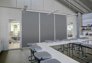 Silent Gliss blinds were layered in the laboratories using roller blinds SG 4910 with Aluscreen Futura fabric to provide glare protection in daylight, and dim-out system SG 4740 for room darkening. To blend harmoniously with the surroundings, the profiles wer colour matched to the window frames. The social and study areas are fitted with hand operated curtain tracks SG 6840 with Wave for a softer room ambience. The end result is an aesthetically stunning, award-winning education facility which has achieved a BREEAM Excellent rating.
